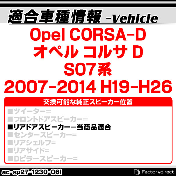 ac-sp27-1230-06l (リアドア専用) Opel CORSA-D オペル コルサ D (S07系 2007-2014 H19-H26) (100-120mm用) ABSインナーバッフルボード スピーカーアダプター ヨーロッパ 欧州EUブランド工場製造 (欧州車 EU バッフル カーステレオ オーディオ カースピーカー)